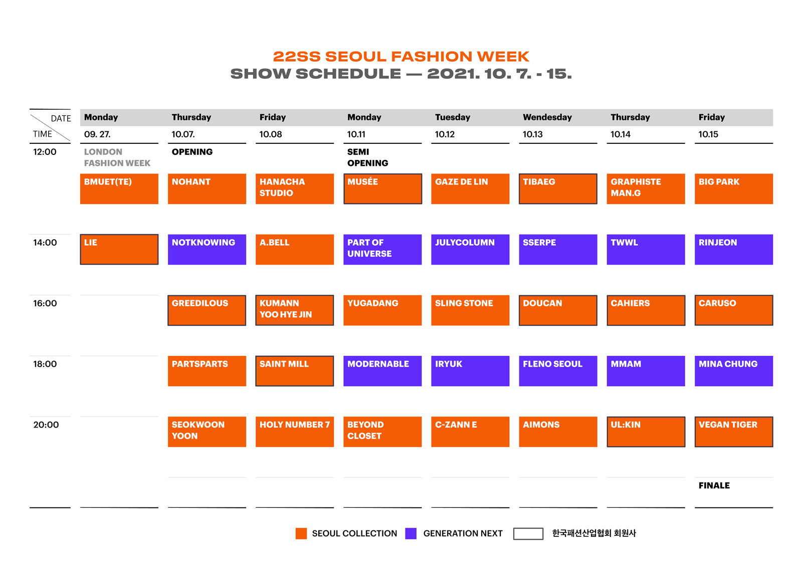 2022 S/S 서울패션위크 디지털 런웨이 일정(10/7~15)