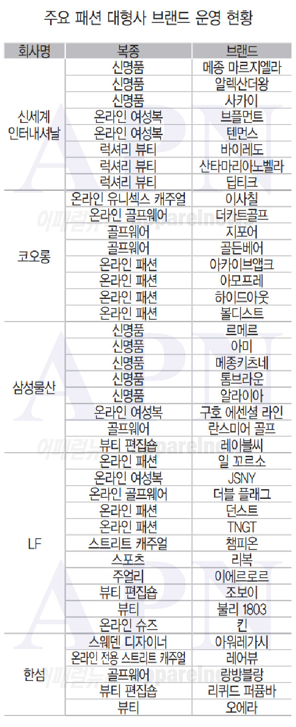 팬데믹 이후 패션 대형사들의 사업 전략이 크게 바뀌고 있다. 기존 대형 볼륨 브랜드 육성에서 탈피, 해외 브랜드와 온라인 패션, 뷰티 중심으로 포트폴리오를 재구성 중이다.