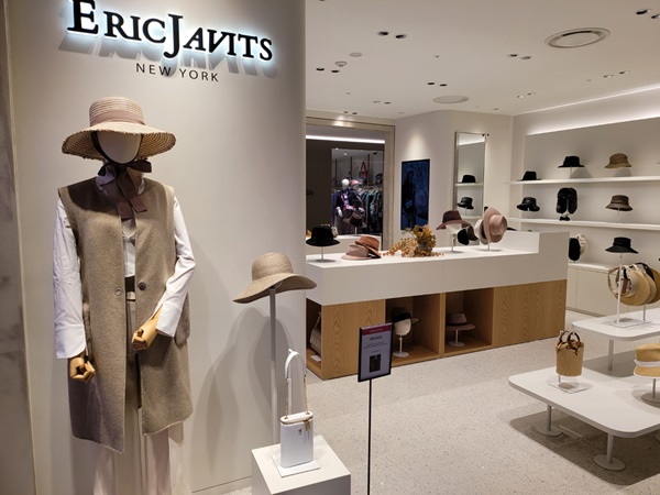 진도(대표 임병남)에서 새롭게 론칭한 미국 모자 브랜드 '에릭자비츠(ERIC JAVITS)'가 롯데백화점 본점 매장을 열었다. 지난 8월 현대백화점 본점 팝업 스토어를 통해 첫선을 보인 이 브랜드는 롯데 본점에 정규 1호 매장을 열며 본격적으로 스타트했다.