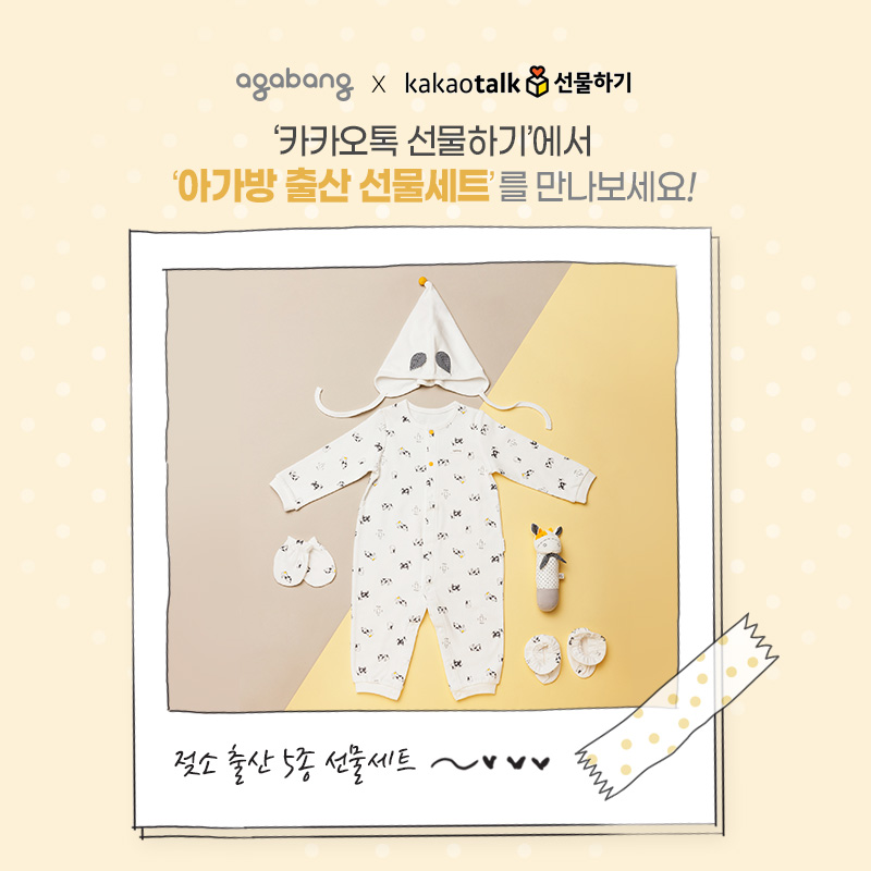 [2021.04.12] 아가방앤컴퍼니의 대표 유아동복 브랜드 ‘아가방(AGABANG)’에서 ‘소띠 해’인 2021년 신축년을 맞아 선보인 ‘젖소 출산 선물세트’가 카카오톡 선물하기에서 인기를 끌어 초도물량이 빠른시간에 완판됐다가 최근 재 입고 됐다.