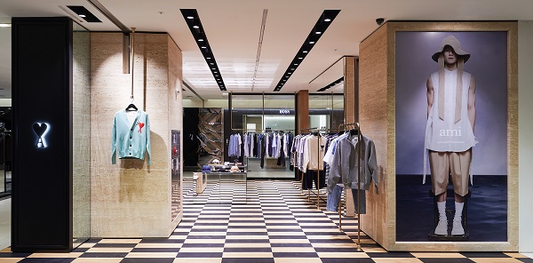 아미의 신세계백화점 센텀시티점은 63.65㎡(약 19.2평) 규모로 5층에 위치했다. 글로벌 스토어 컨셉이 적용된 매장 인테리어는 프랑스 파리 부티크의 건축적인 요소를 담아 완성됐다. 블랙 컬러와 우드 페널링으로 디자인된 바닥 패턴, 미러 테이블과 벽, 브라스 소재의 헹거로 브랜드 특유의 고급스러운 무드를 고스란히 느껴볼 수 있다.