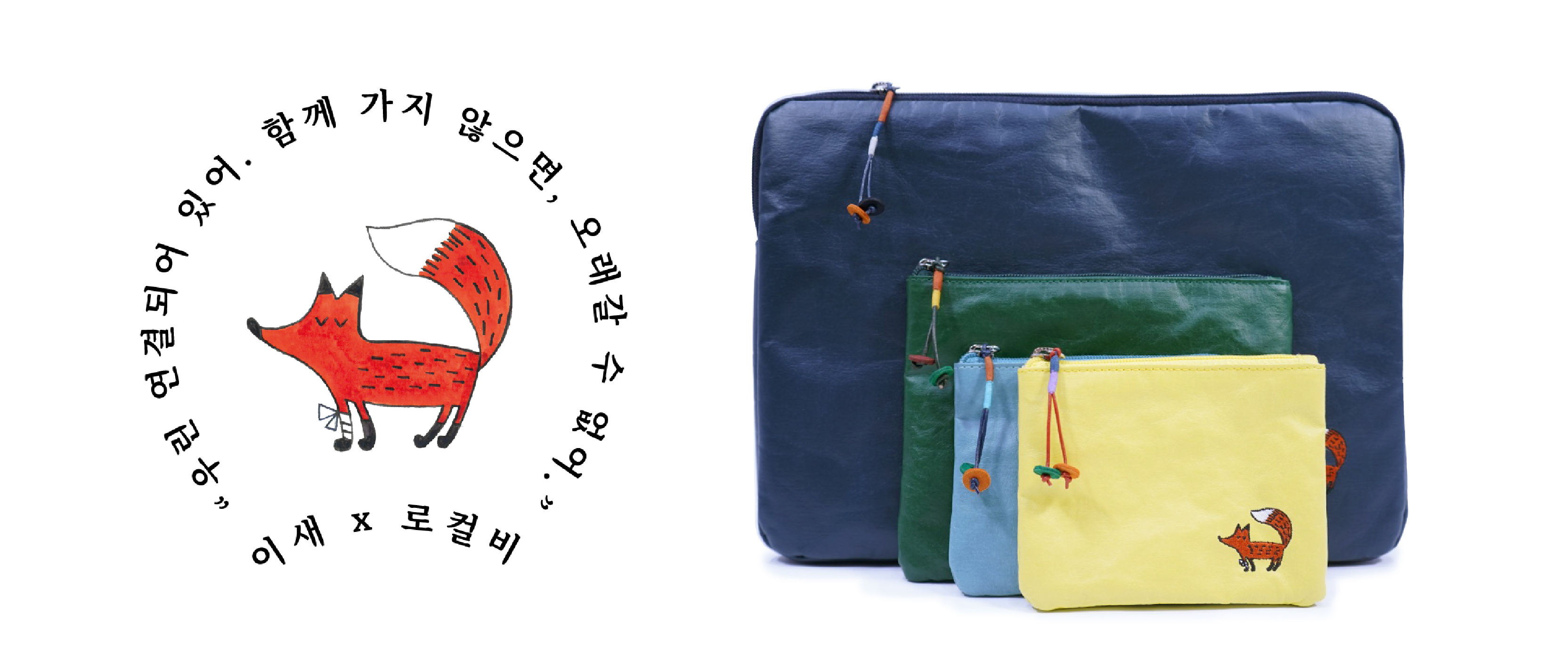모든 파우치는 친환경 식물성 가죽에, 수공으로 하나하나 자연 염색한 오브제가 달린 한정판 제품이다. 파우치 표면에 자수로 새긴 ‘붕대 감은 붉은 여우’는 소백산 국립공원연구원 생태관찰원에서 치료받은 실제 여우를 형상화했다. ‘붉은 여우와 영주’를 대표하는 캐릭터다.