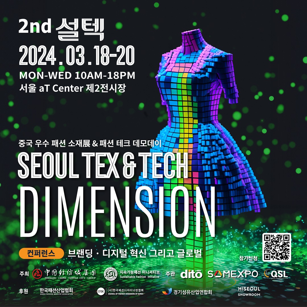 지난해에 이어 두번째로 개최되는 2024설텍(Seoul Tex&Tech)은 팬덤 브랜딩과 밸류체인 디지털 혁신을 기반으로 한국 패션의 마켓 스코프를 글로벌 무대로 확장한다는 의미에서 ‘DIMENSION’을 주제로 선정했다.