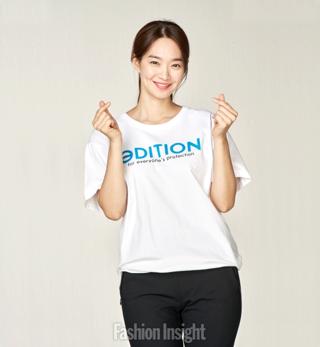 [모델 신민아가 착한 소비 프로젝트 '노스페이스 에디션'을 소개하고 있다]
