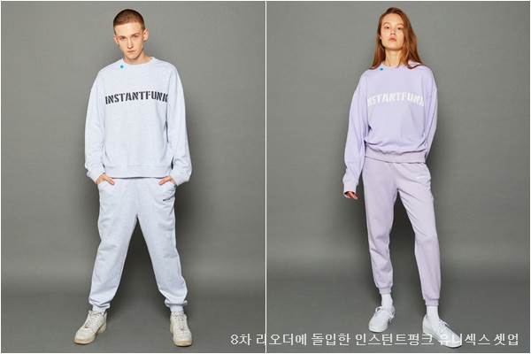 평소 아우터와 티셔츠가 베스트 품목에 올랐던 것과 달리 판매 베스트 순위 10위권이 대부분 트레이닝 셋업과 조거팬츠로 채워졌다. 인스턴트펑크의 경우 스테디셀러 스웻 셋업을 새로운 컬러로 선보였고 7차 리오더를 진행했다. 유니섹스 핏, 차별화된 컬러(라벤더, 멜란지 등), 셀럽 마케팅을 인기 요인으로 분석하고 있다.