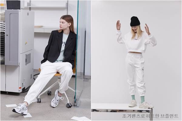 ‘지컷(g-cut)’에서도 아이보리, 민트 색상의 조거 팬츠가 올 봄 출시 2주만에 70% 판매율을 보였다. 지컷의 여성스러운 스타일이 잘 드러나는 민소매 후드 티셔츠와 밴딩 스커트를 믹스매치할 수 있도록 함께 선보여 좋은 반응을 얻었다. ‘보브(VOV)’에서는 주름과 레터링 그래픽으로 조거팬츠를 차별화했고, 출시 한 달만에 재생산에 들어갔다.