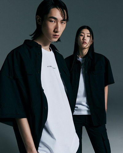 올해 준지의 키 아이템인 소프트 밀리터리룩에서 착안된 셔킷과 루즈핏 티셔츠, 카고 조거 팬츠 등으로 구성했다. 이브 인사이트는 하이브의 음악과 음악으로 만들어 낸 문화를 하이브 아티스트와 팬들이 경험할 수 있는 오프라인 공간으로 창조됐다. 준지는 이런 컨셉을 극대화하는 차원에서 하이브 인사이트 직원들이 고객을 맞을 때 세련되고 스타일리시한 친구로서 고객 접점의 차별화된 경험을 주도록 유니폼 디자인에 신경 썼다.