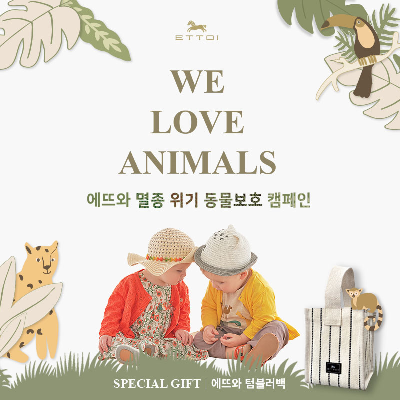 [2021.06.01] 프리미엄 유아동복 브랜드 에뜨와(ETTOI)에서 사회공헌 캠페인의 일환으로 지구와 동물 보호의 중요성을 알리는 ‘멸종 위기 동물보호 캠페인’을 이달 말까지 진행한다고 1일 밝혔다.