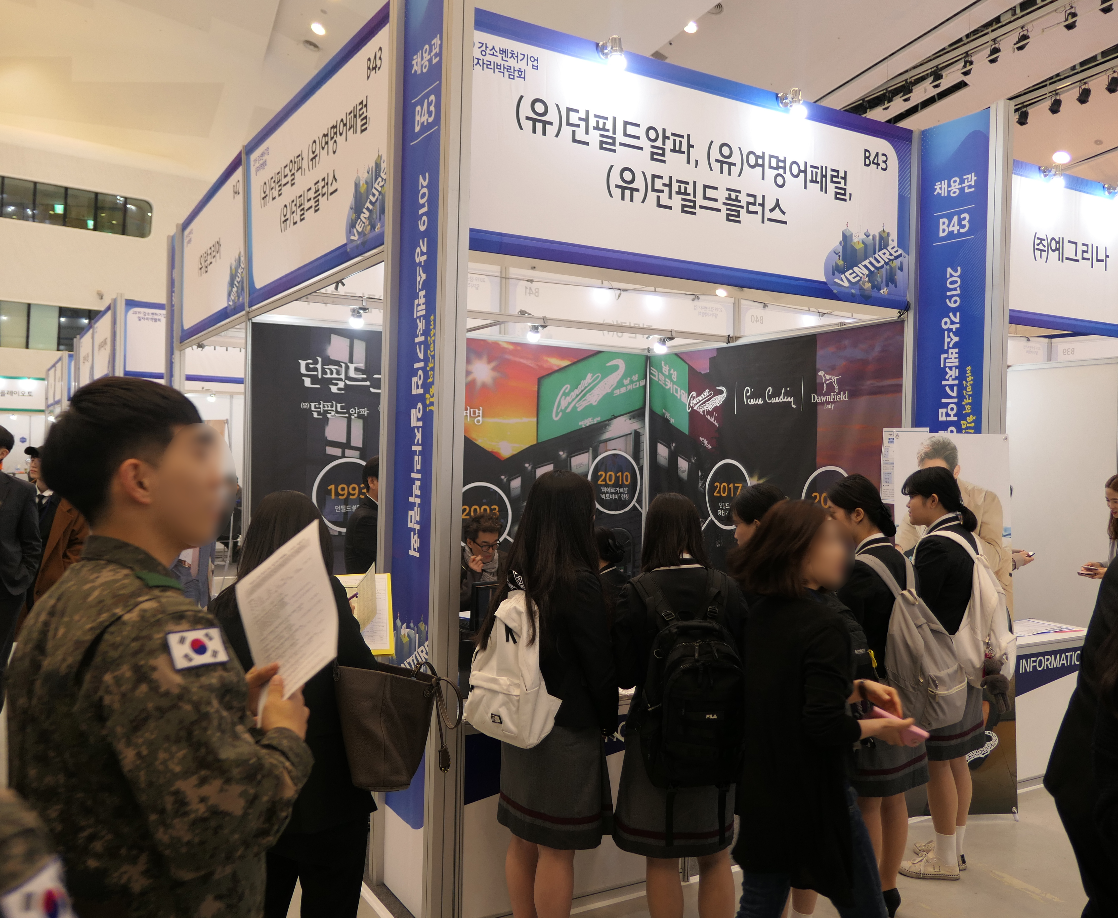 던필드그룹(대표 서순희)은 지난 4일 서울 동대문 디자인플라자(DDP)에서 한국여성경제인협회가주관기관으로 참가한 ‘2019년 강소벤처기업 일자리박람회’에 참가해 인재 채용에 나섰다.