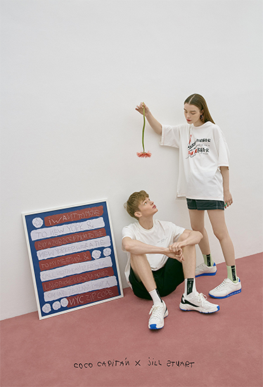 질스튜어트뉴욕은 코코 카피탄의 작품을 브랜드만의 세련된 디자인으로 녹여내 이전에 볼 수 없던 새로운 가치를 더했다. 컬렉션을 도화지로 삼아 아트워크 그 자체를 감각적으로 프린팅 하는 것은 물론, 코코 카피탄의 상징과도 같은 핸드라이팅과 작품 속 생동감 넘치는 색상을 제품 곳곳에 포인트로 활용해 단순한 패션 아이템을 뛰어 넘어 예술적 가치를 지닌 컬렉션으로 완성했다.