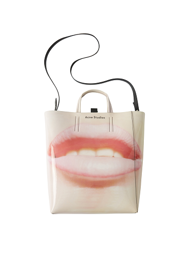 PVC소재의 베이커 백에는 아크네스튜디오가 발행하는 역사적인 브랜드 매거진 <아크네 페이퍼(Acne Paper)>에 실린 유명 예술작품이 프린트돼 특별하다. 가방을 꽉 채우고 있는 입술 프린트가 눈길을 사로잡으며, 전체적으로 심플하면서 감각적인 멋을 보여준다.