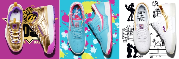 먼저 '휠라 디스럽터2 X 사샤 뱅크스'는 메탈릭 골드 컬러와 일렉트릭 퍼플 컬러를 가미한 슈즈에 사샤 뱅크스의 이름과 뱅크스의 별명인 'The Legit Boss'를 신발 곳곳에 새겼다.
