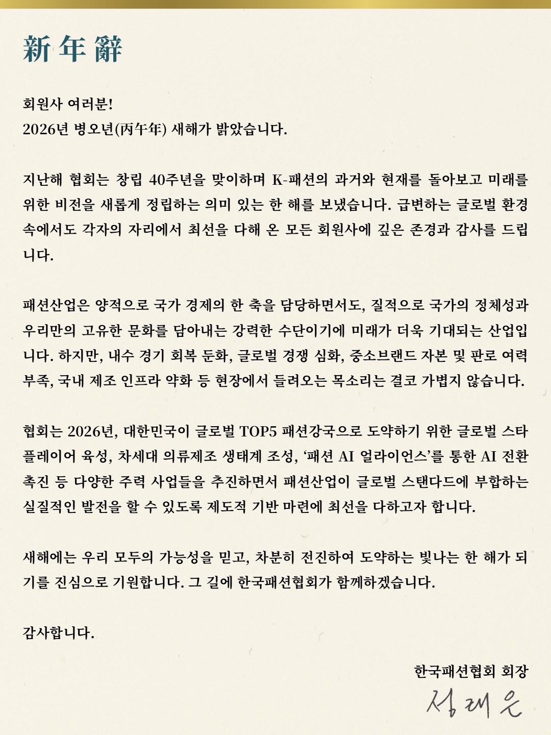 [신년사] 모두의 가능성을 믿고 차분히 전진하여 도약하는 2026년이 되길 기원합니다