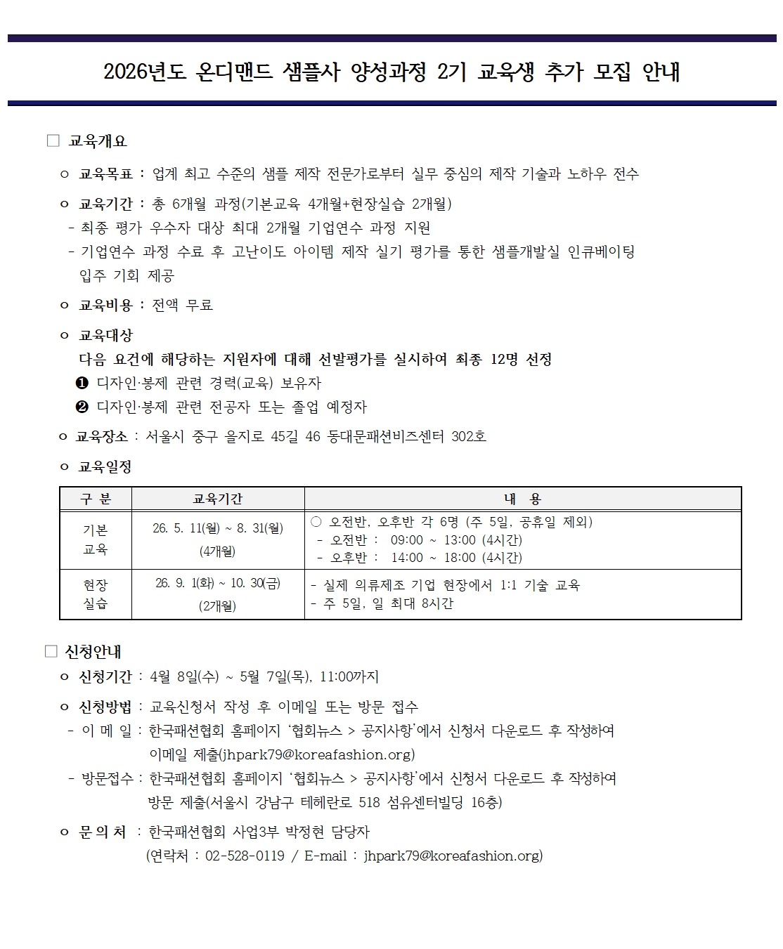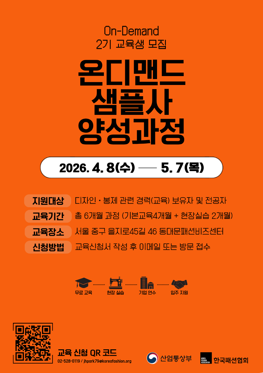[추가모집] 2026년도 온디맨드 샘플사 양성과정 2기 교육생 추가 모집(~5.7 오전 마감)