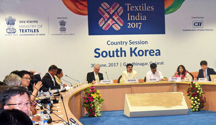 ▲ 인도 구라자트에서 열린 Textiles India 2017에 참석한 성기학 한국섬유산업연합회 회장 © TIN뉴스
