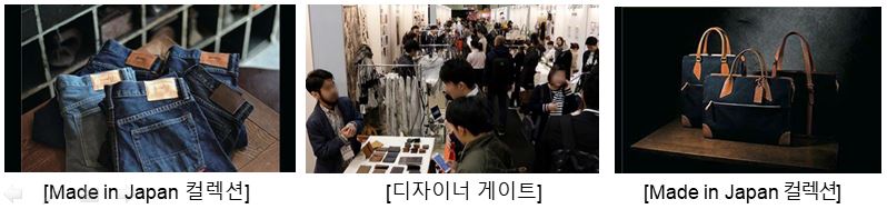 한 예로, 오카야마현에 본사를 두고 있는 한 패션 기업은 청바지 제조에 사용하는 독특한 감촉의 면직물을 전시했다. 또한, 일본의 미래 패션산업을 이끌어 나갈 신진 디자이너의 열정이 담긴 디자인과 제품을 전시한 ‘디자이너 게이트 존’ 에도 다수의 바이어와 방문자의 발길이 끊기지 않았다.