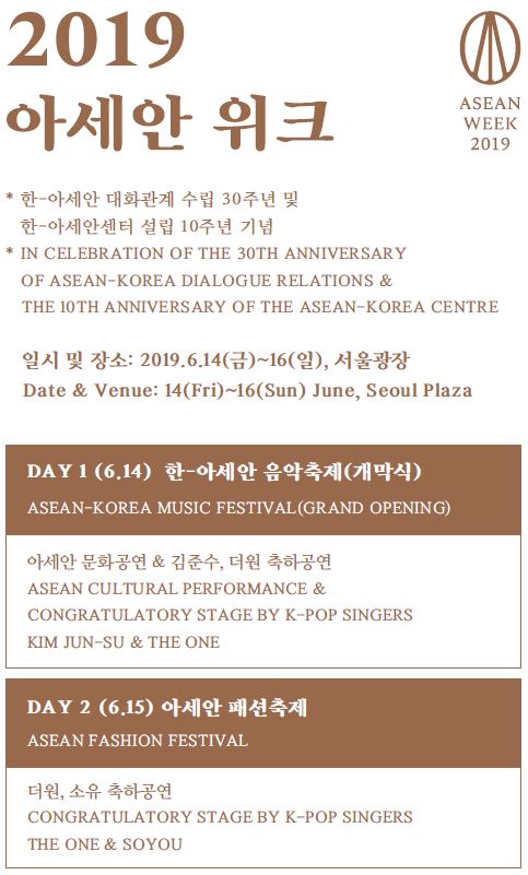 한-아세안센터는 서울시와 공동 주최로 2019.6.14.(금)-16(일)간 서울 광장에서
