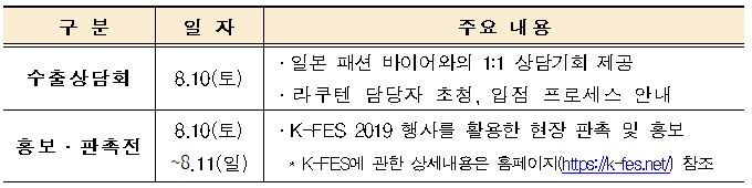 ㅇ 행사명 : 한국패션 일본진출 로드쇼