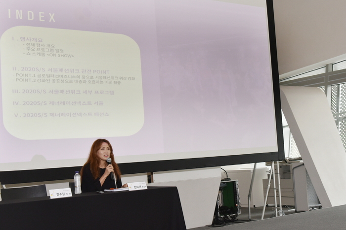 이날 기자간담회에는 이번 시즌부터 서울패션위크의 새로운 수장이 된 전미경 서울패션위크 총감독과 김수정 서울디자인재단 패션사업팀 팀장이 참석해 2020 S/S 서울패션위크의 운영 및 변화된 주요 프로그램에 대해 전반적으로 설명하는 시간을 마련했다.