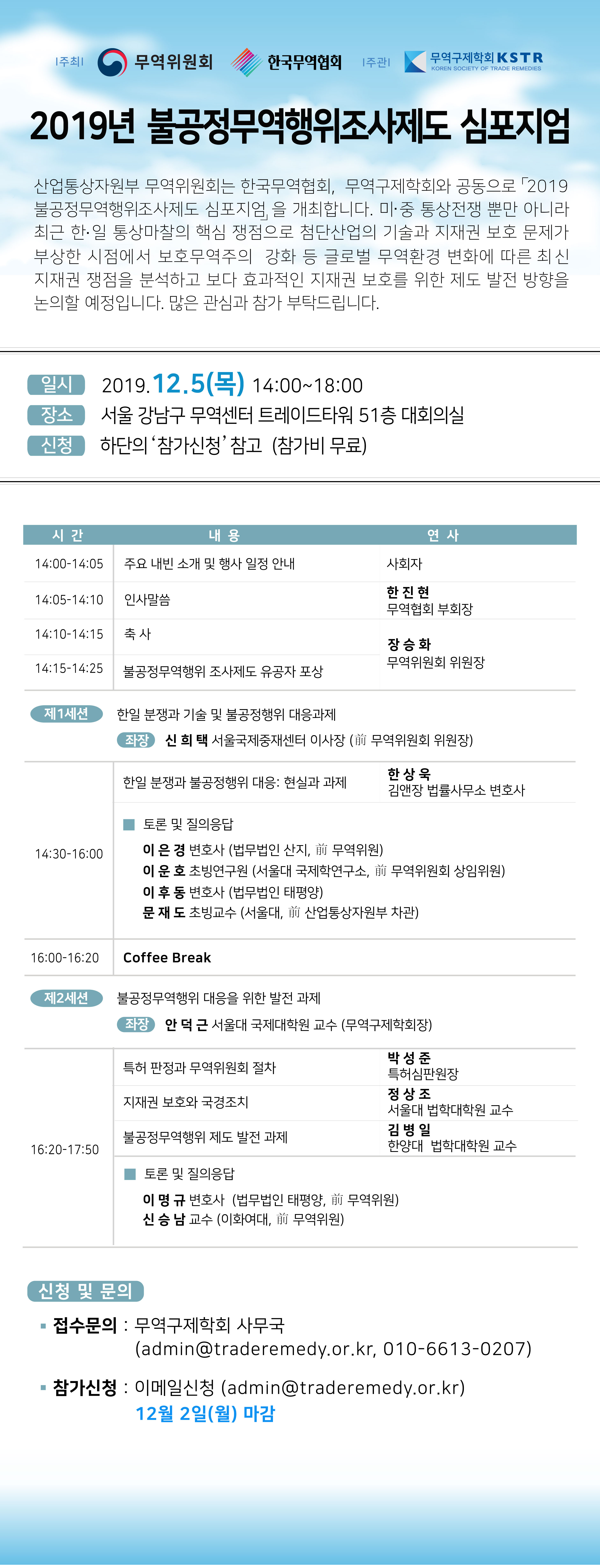 2019년 불공정무역행위조사제도 심포지엄 안내