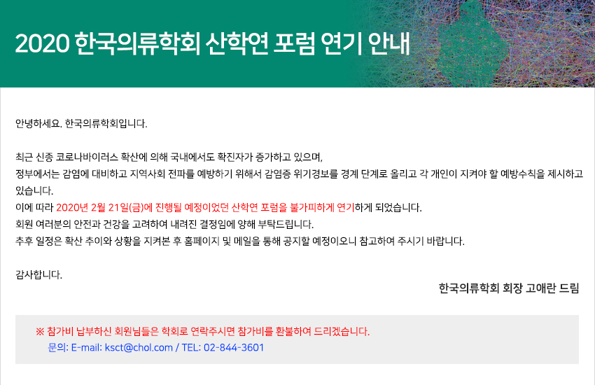 [안내] 2020 한국의류학회 신학연 포럼 연기 안내