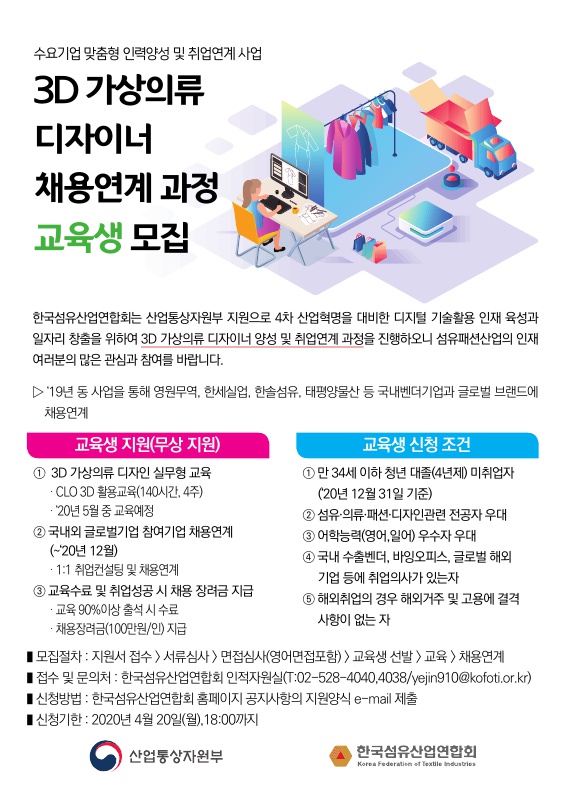 한국섬유산업연합회 3D가상의류디자이너 채용연계과정 교육생 모집