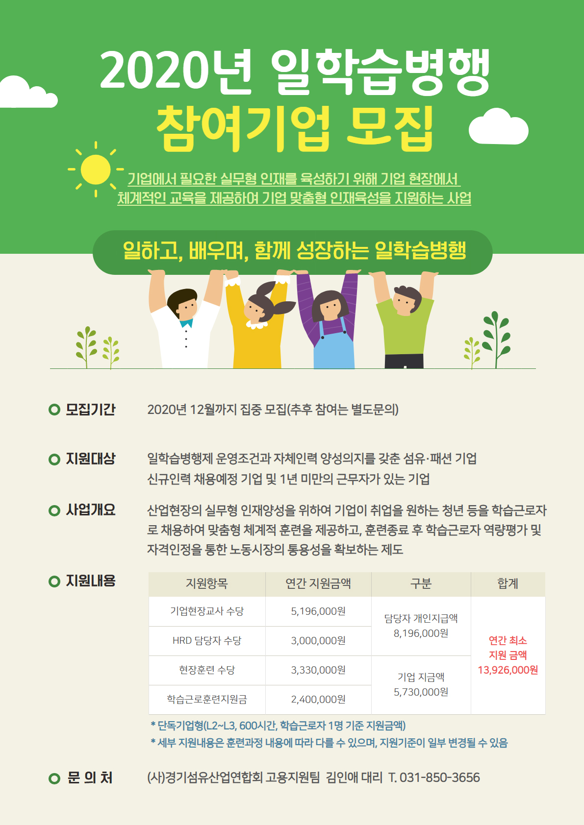 [안내] 경기섬유산업연합회 2020년 일학습병행 기업모집