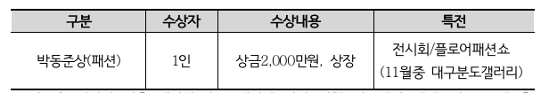 ※ 수상자는 작품 5착장 이상 제작 의무화(제작비 상금 포함)