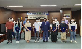대구경북섬유산업연합회(회장 이의열)는 7월 28일 오전 11시 대경섬산연 회장실에서 섬유패션산업 발전에 기여한 부모를 둔 자녀들에게 장학금 전달식을 가졌다.