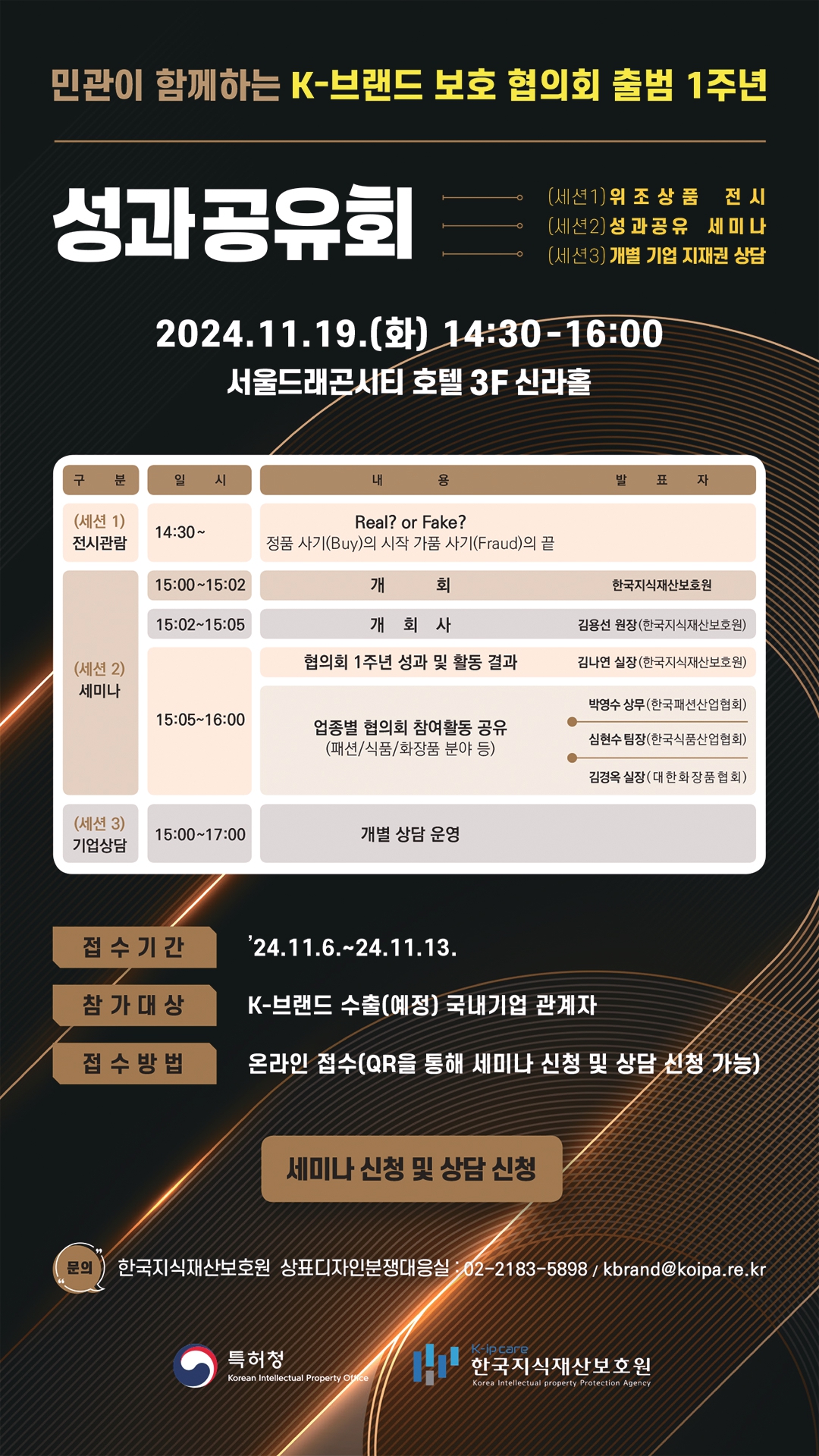 [안내](한국지식재산보호원) K-브랜드 보호 민관 협의회 출범 1주년 성과공유회