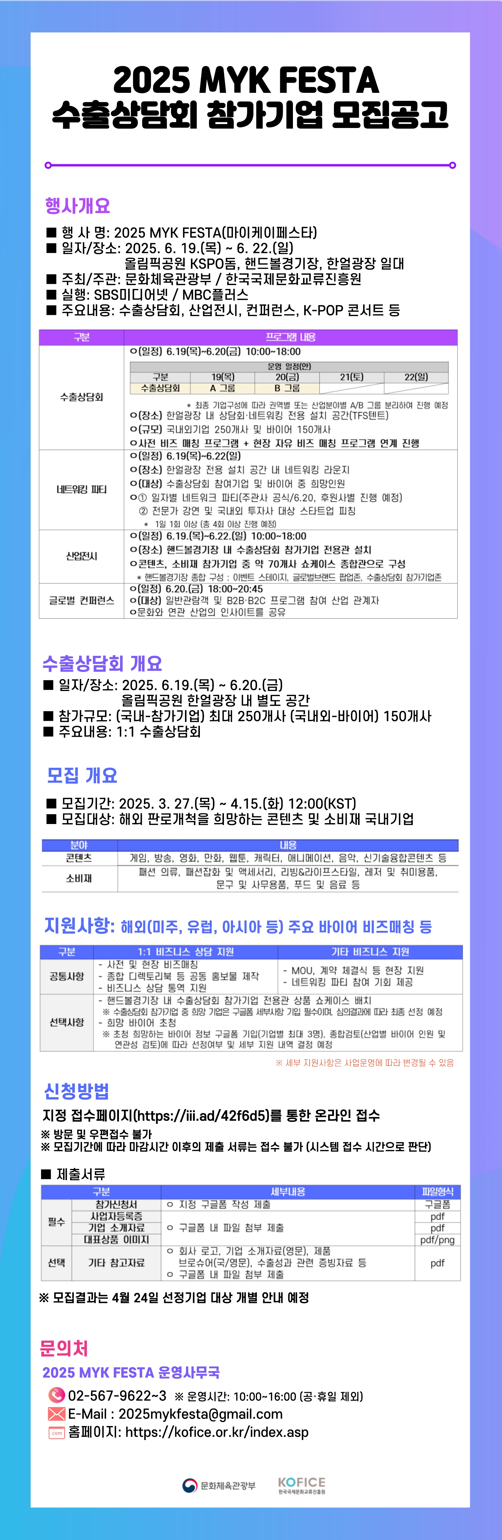[공고](한국국제문화교류진흥원) 2025 MYK FESTA 수출상담회 참가기업 모집공고