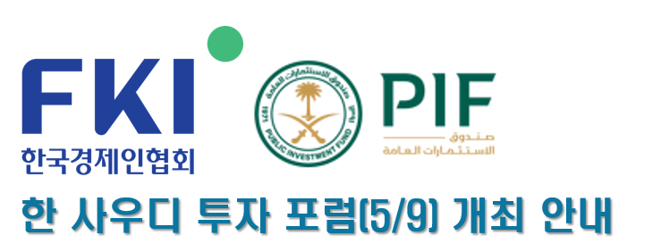 한국경제인협회는 사우디아라비아 국부펀드(PIF, Public Investment Fund)와 공동으로 오는 5월 9일 서울 롯데호텔 크리스탈 볼룸에서 「한-사우디 투자 포럼」을 개최합니다.
