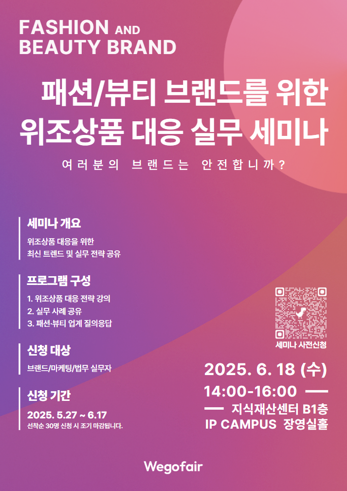 [모집](위고페어) 패션/뷰티 브랜드를 위한 위조상품 대응 실무 세미나