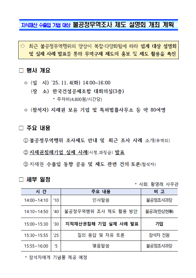 수출입기업 대상 불공정무역행위 조사 제도 설명회 개최계획.pdf [78.11KB]