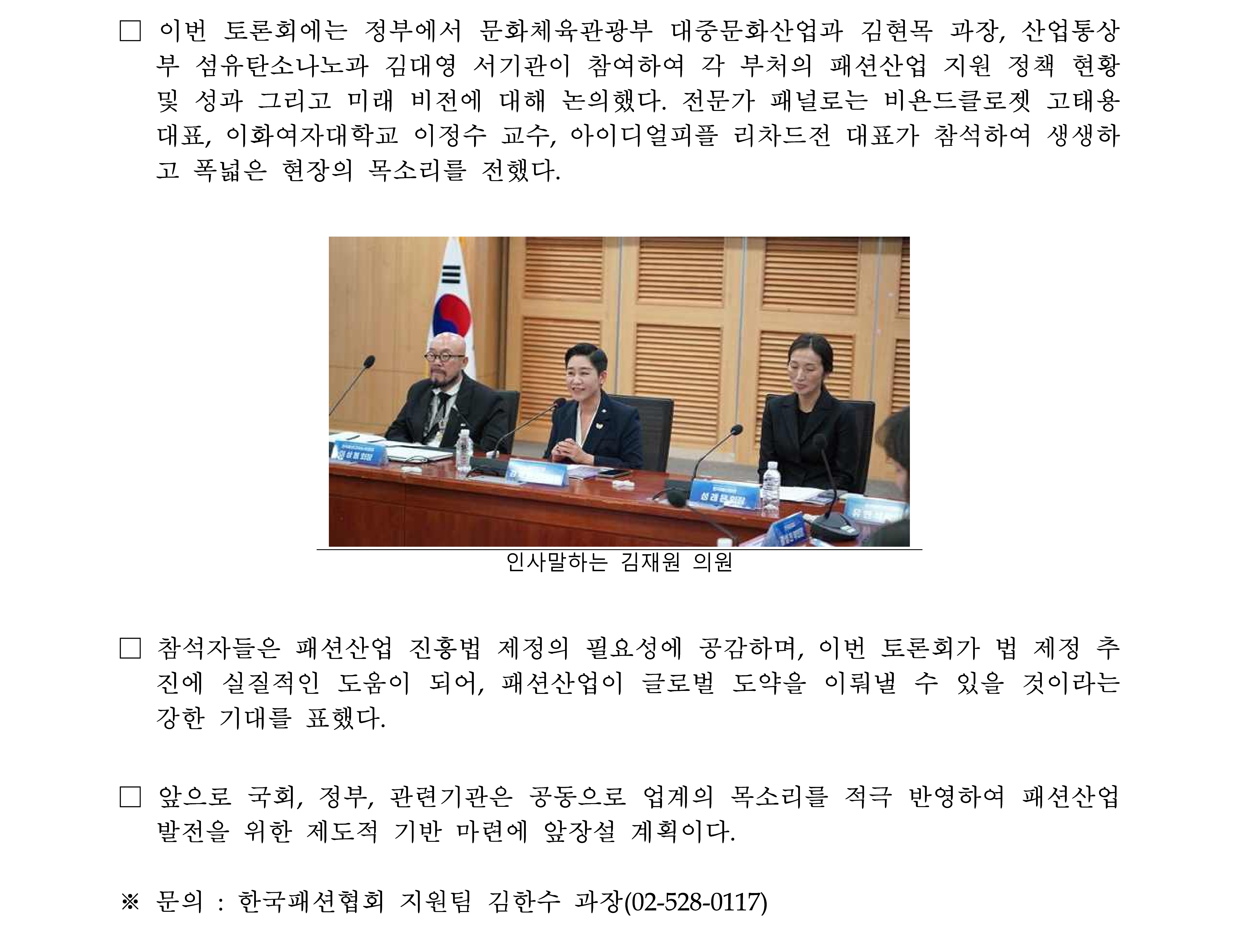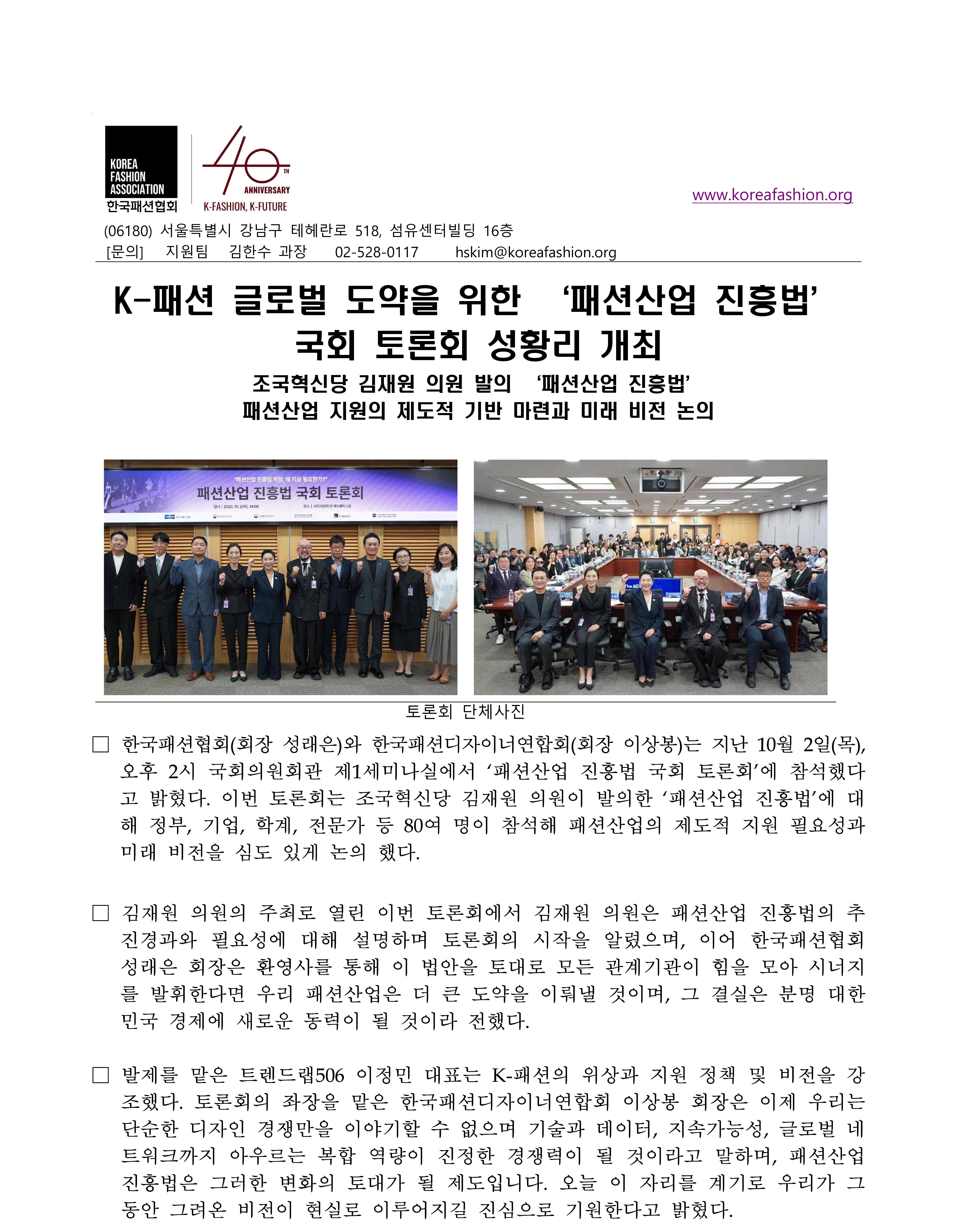 [보도자료] K-패션 글로벌 도약을 위한 ‘패션산업 진흥법’ 국회 토론회 성황리 개최_251002.pdf [347.13KB]