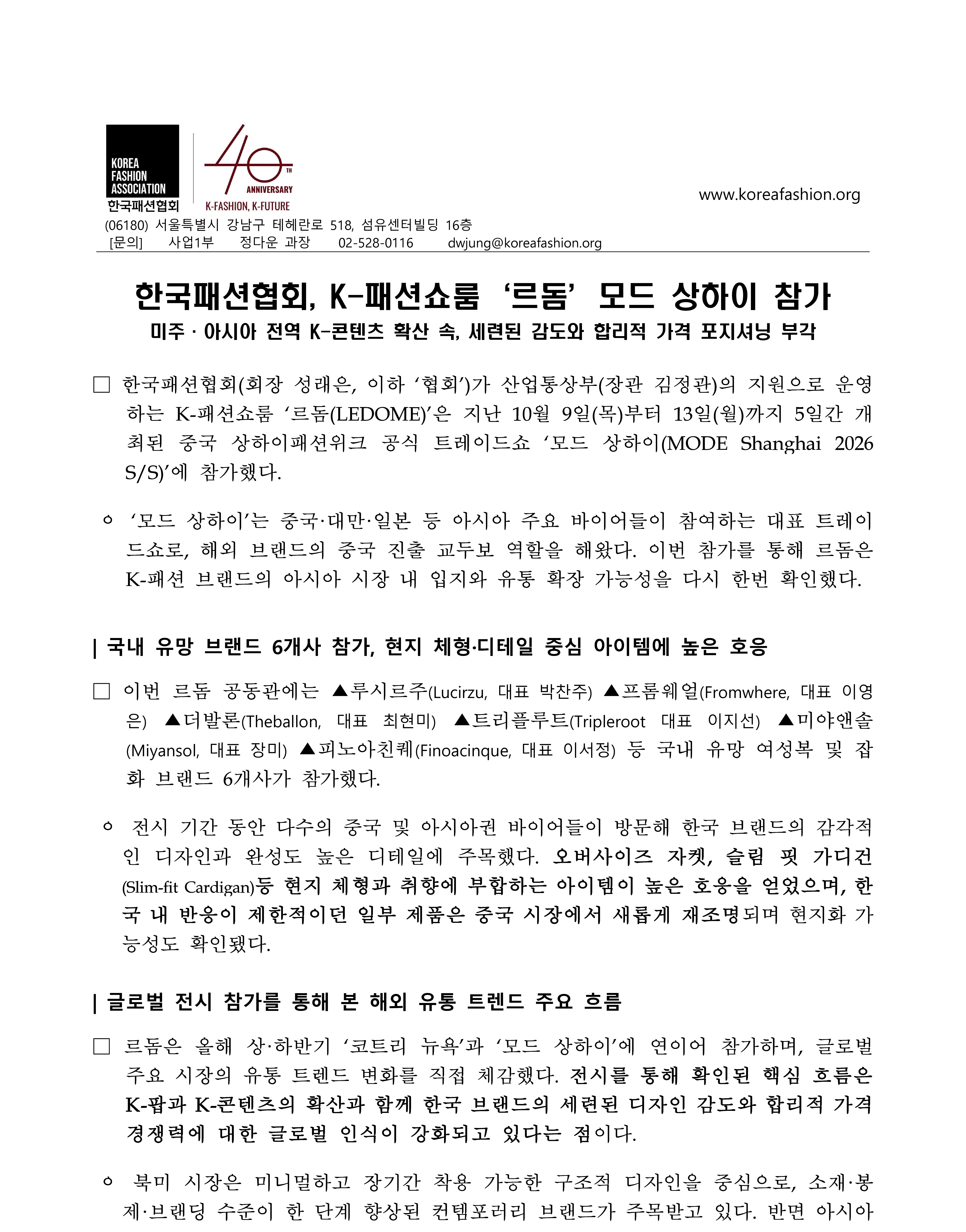 [보도자료] 한국패션협회, K-패션쇼룸‘르돔’모드 상하이 참가_251020.pdf [645.48KB]