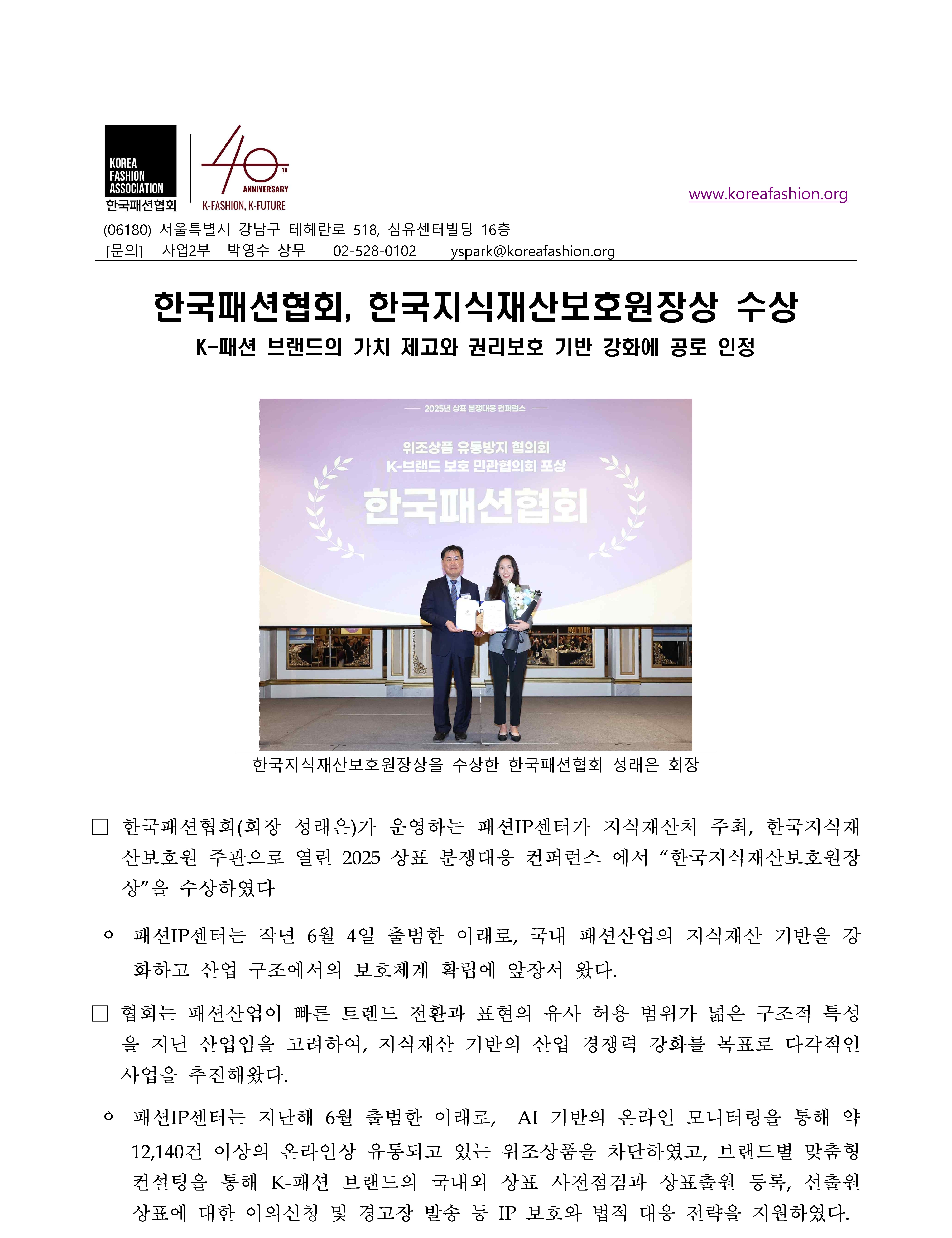 [보도자료] 한국패션협회, 한국지식재산보호원장상 수상.pdf [280.75KB]