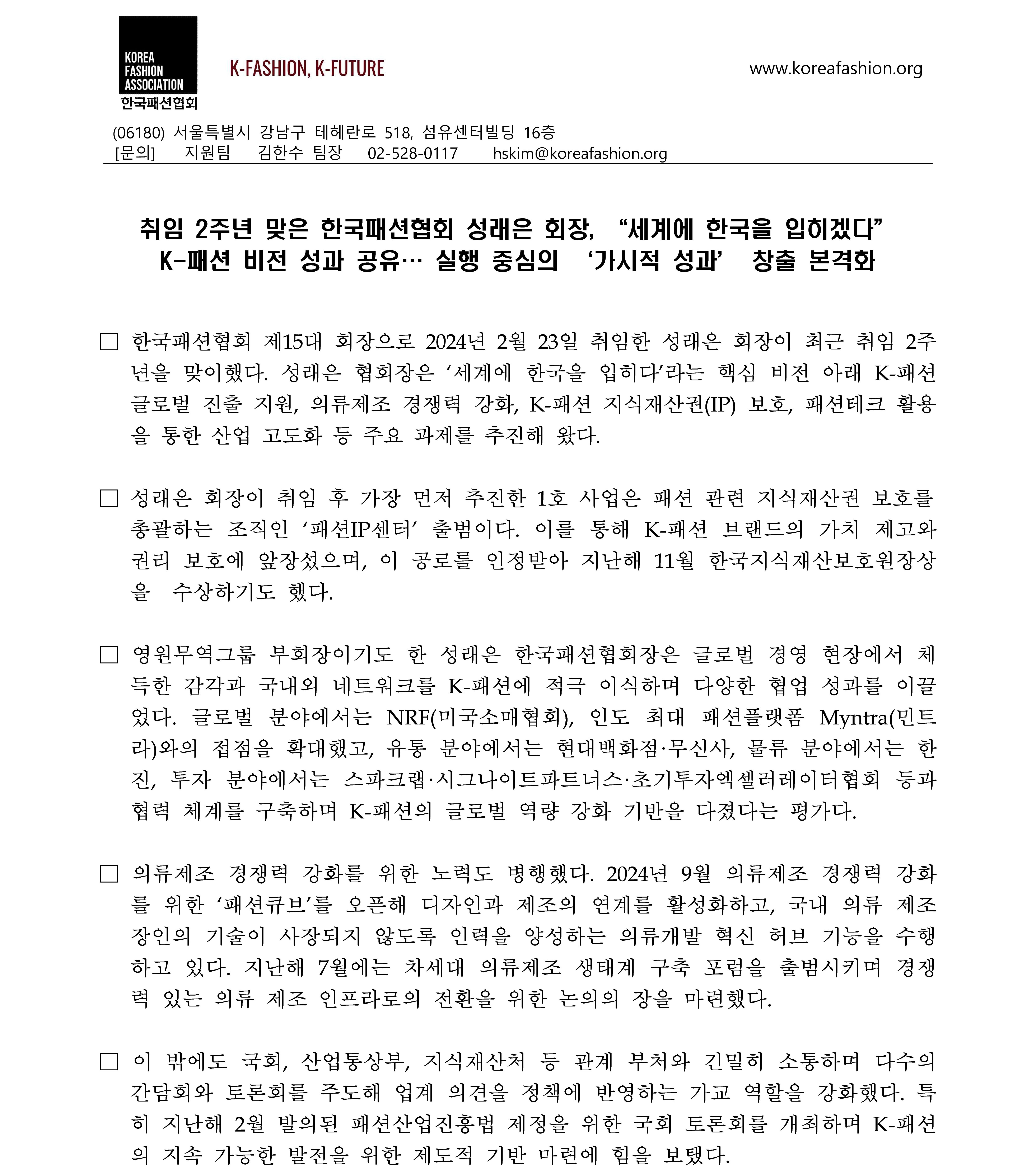 260303_(보도자료) 취임 2주년 맞은 한국패션협회 성래은 회장, “세계에 한국을 입히겠다”.pdf [198.75KB]