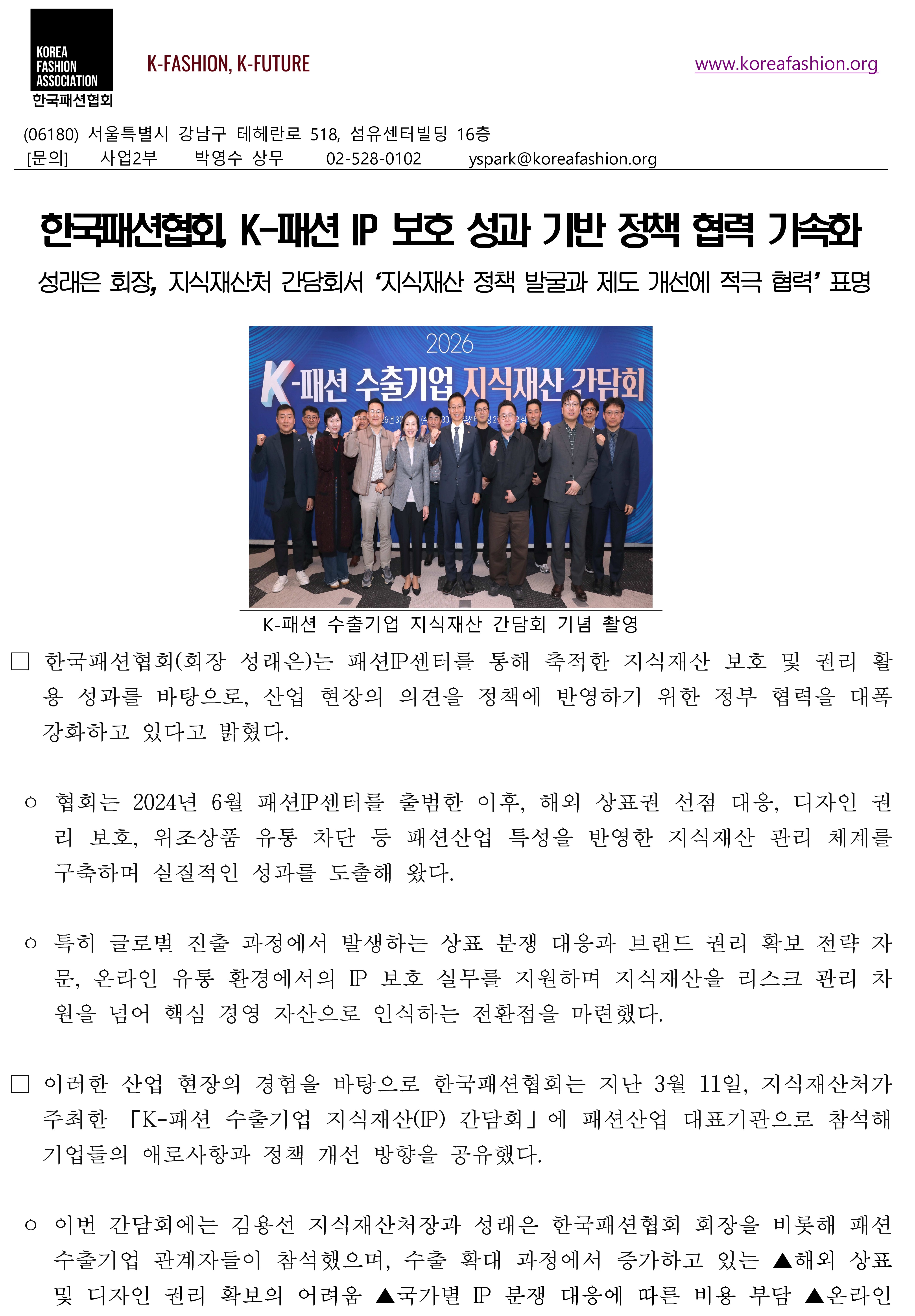 보도자료-패션협회_한국패션협회, K패션 IP 보호 성과 기반 정책 협력 가속화_0313.pdf [3.36MB]