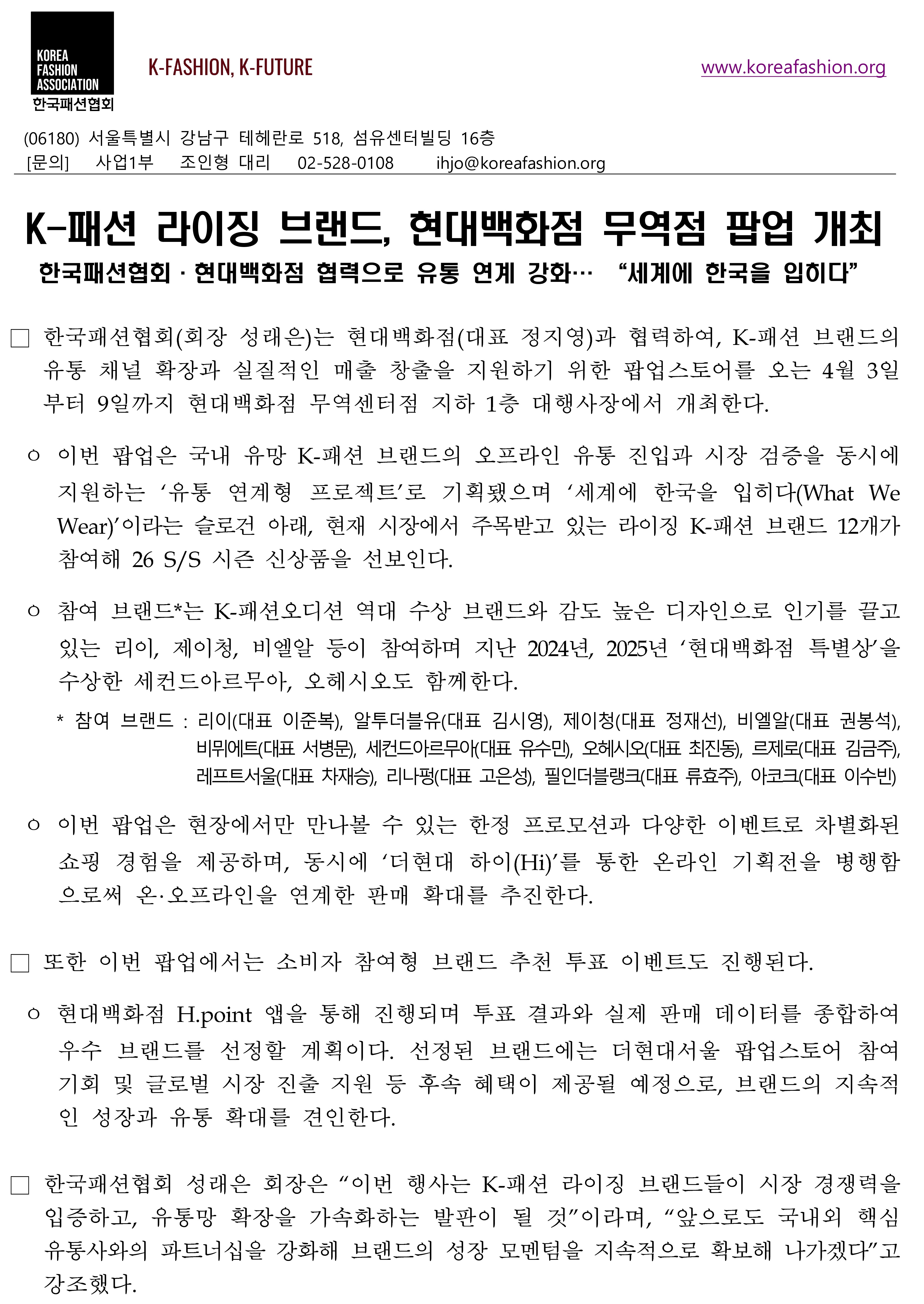 보도자료_패션협회_K-패션 라이징 브랜드, 현대백화점 무역점 팝업 진행_0331.hwp [10.18MB]
